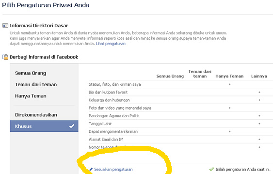 2. Pilih Menu Akun-->Pengaturan Privasi-->Sesuaikan Pengaturan