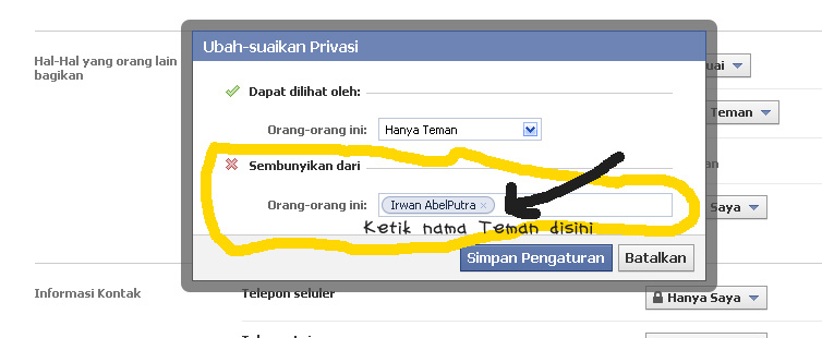 4. Lalu Ketik Nama teman Anda seperti dibawah ini dan Simpan