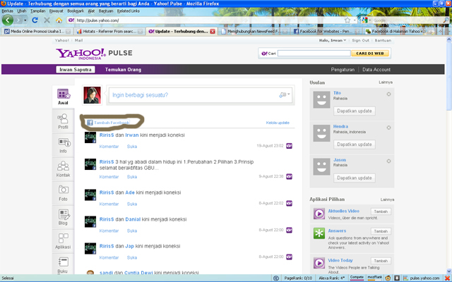 Kini Yahoo dengan fitur Yahoo!Pulse memberikan salah satu fasilitas tersebut untuk menghubungkannya.