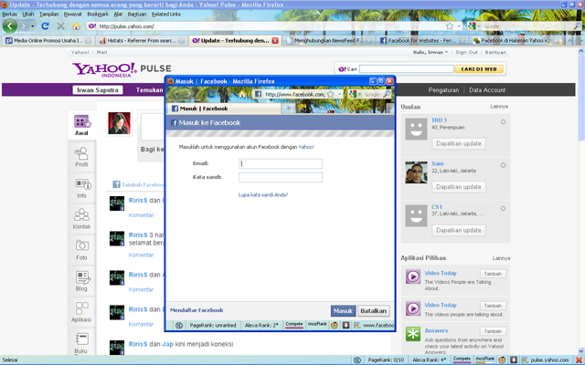 Bagaimakah caranya untuk menghubungkan jejaring sosial Facebook dengan email Yahoo, berikut tipsnya :