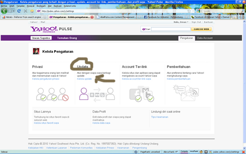 Seperti tips sebelumnya dimana melalui Yahoo!Pulse, Anda dapat menghubungkan Facebook Anda dengan Yahoo, maka kami mencoba untuk memberikan tips singkat bagaimana mengatur status update Facebook dll di Yahoo Mail Anda.